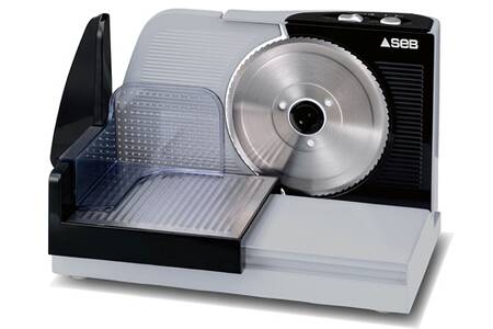 Cette trancheuse est dotée d’une lame lisse de 19,5 cm de diamètre. Elle peut couper jusqu’à 15 mm d’épaisseur. La coupe de la viande est facilitée et adaptée aux débutants grâce au biseau de la trancheuse. Elle est équipée d’un système de protection avantageux. La trancheuse est simple d’utilisation grâce à un simple bouton marche/arrêt sur le côté. La trancheuse possède aussi un affûteur de lames avec rangement intégré, qui permet de garder ses lames bien aiguisées pour que l’appareil dure plus longtemps. Le prix est élevé pour une utilisation de particulier, allant jusqu’à 400€ en moyenne.